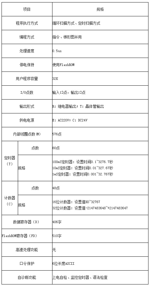 12点NPN型输入,12点继电器(R)或晶体管(T)输出